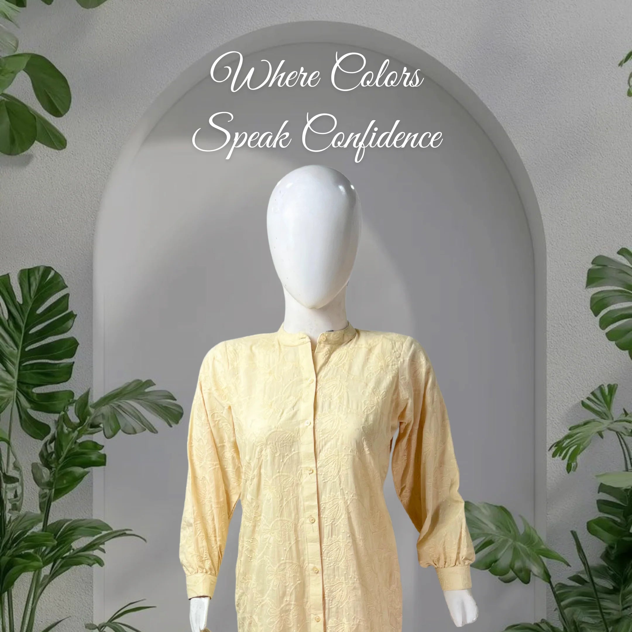 Bright, elegant, and effortlessly graceful — Lemon Glow brings a refreshing burst of color to your wardrobe. Crafted from delicate chicken kari fabric, this soft yellow kurta features intricate embroidery...