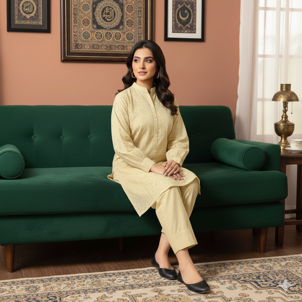 Whether you’re dressing up for a family dinner or a festive event, our Chicken Kinari Suits bring timeless charm to every occasion.